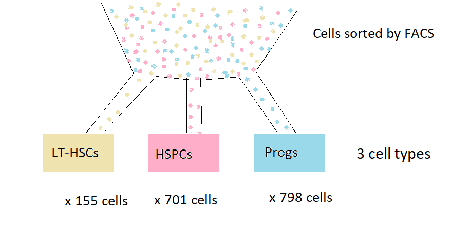 There are three cell types: LT-HSCs, HSPCs, Progs This is the cell “treatment”