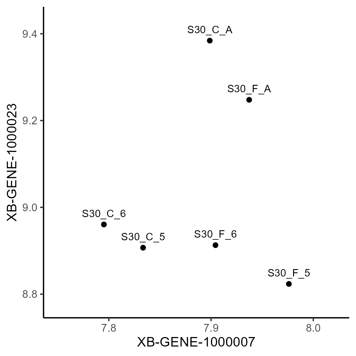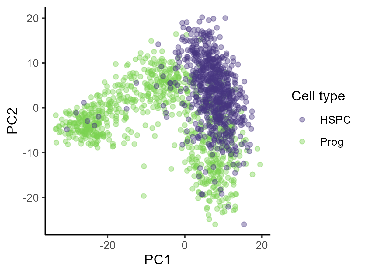 This gives us some in insight in how the sample/cells cluster. But we have a lot of genes (even for the stem cells) to consider. How do we know if the pair we use is typical? How can we consider all the genes at once?